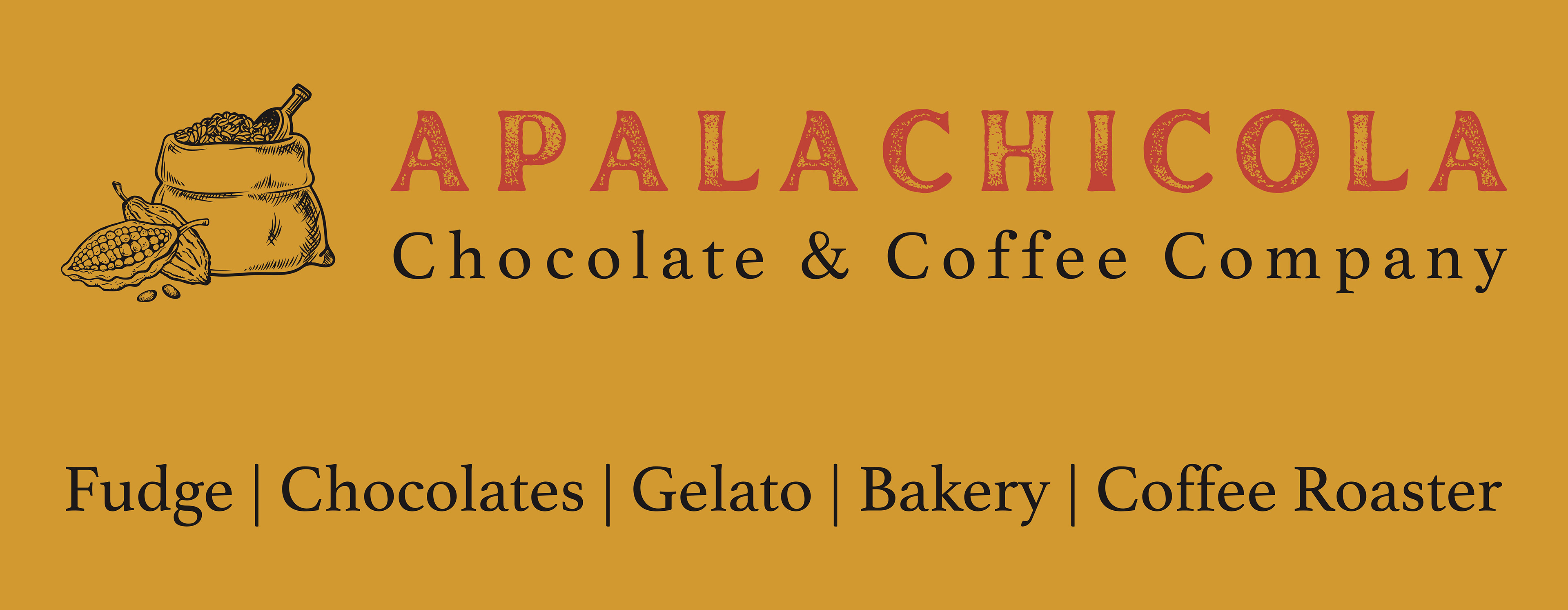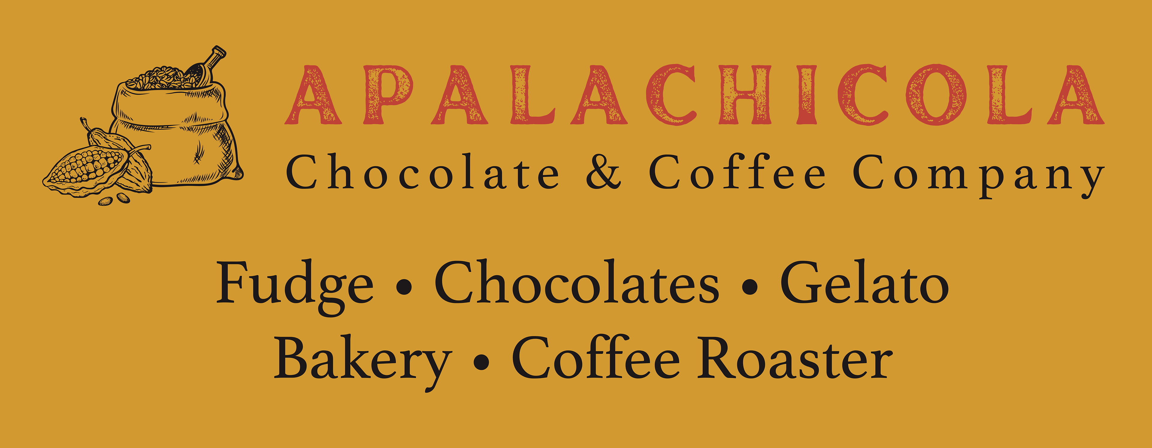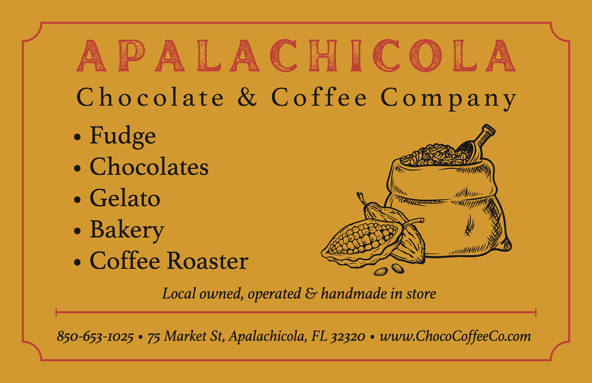 Print ad and sidewalk signs for Apalachicola Chocolate & Coffee Company in Apalachicola, FL